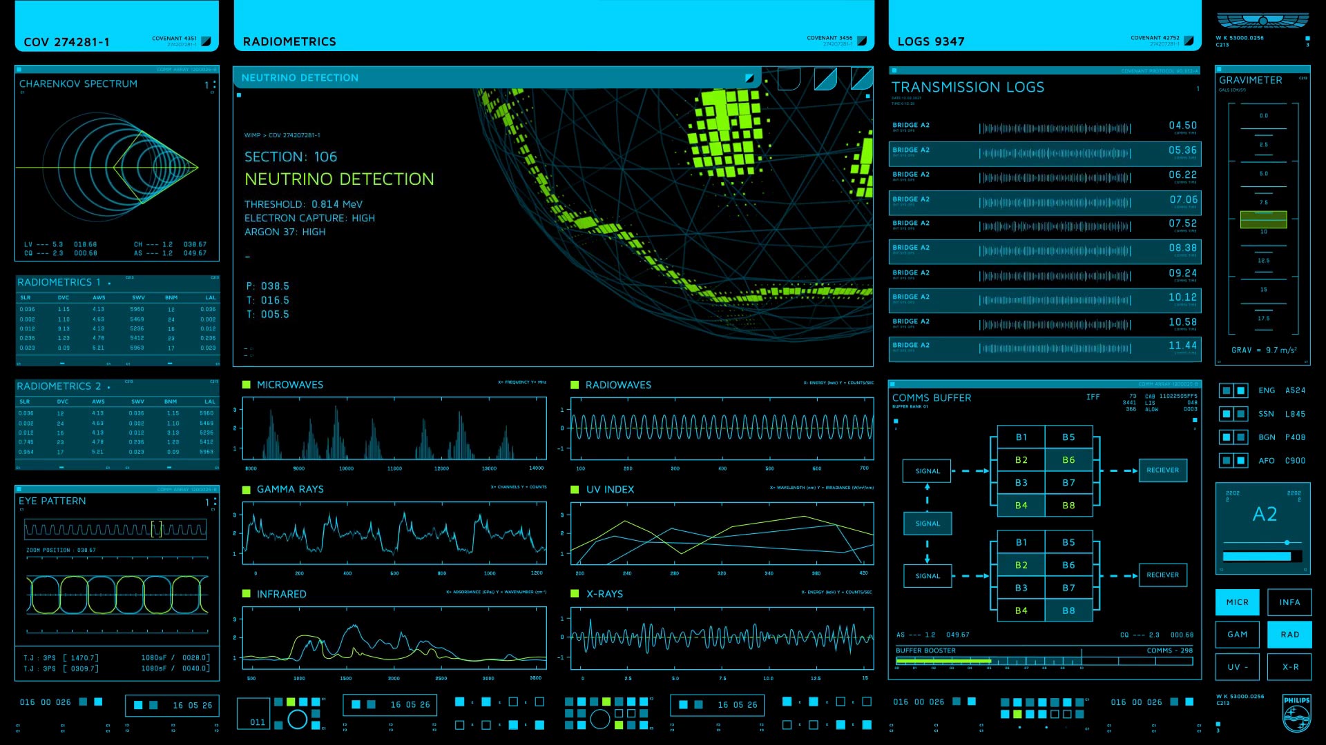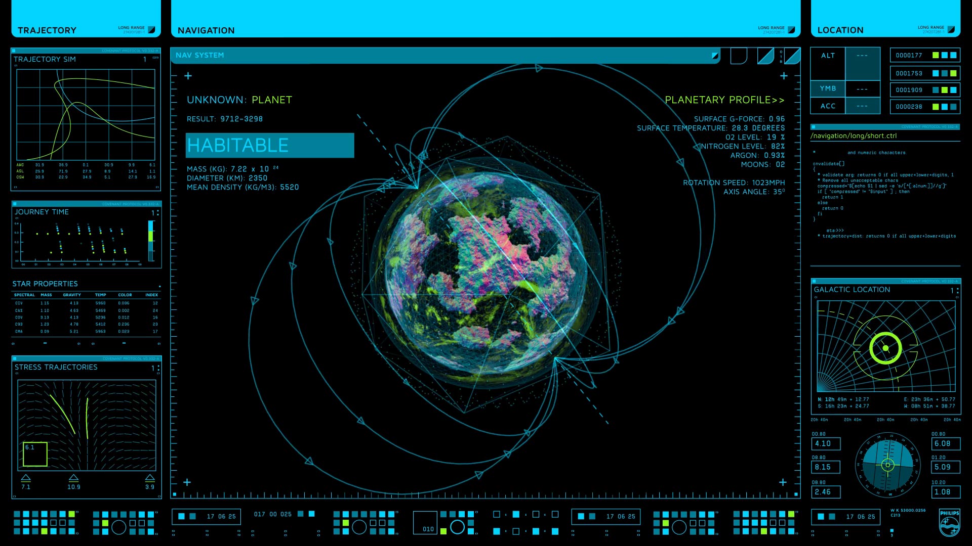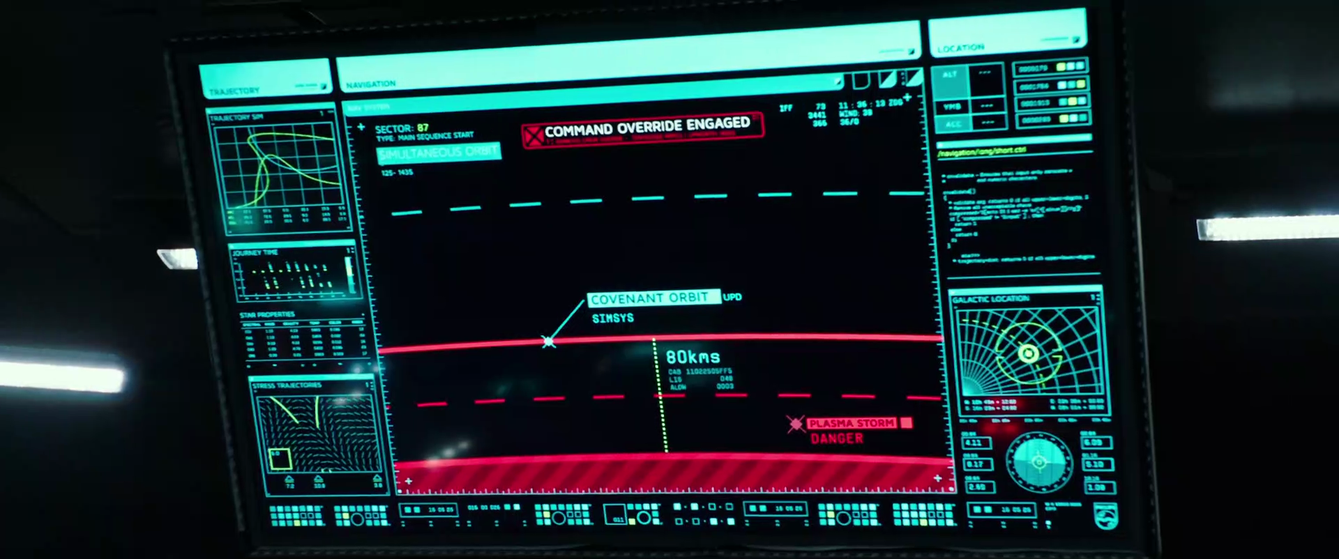 Martin was Screen Graphics Supervisor for Alien:Covenant and led a team of 10 people to design, animate and playback all of the on set screengraphics. All graphics were art directed by Martin, with design and animation being done by Sam Hoh, Sam Scopelliti, Julian Reinhold and Carl Braga.
